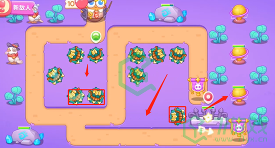 1、开局在中间放置多重箭清理周围的道具,之后继续放置多重箭。