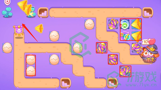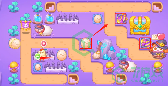 2、打掉右上角的道具继续放置鸡蛋。