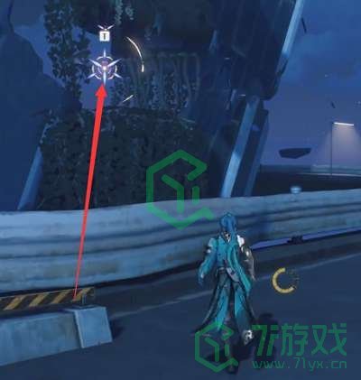 3、一直走会在前面看到一个钩索发射器,上前来到它的面前激活它。