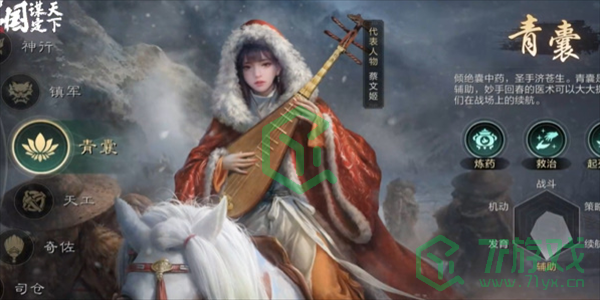 青囊可以生产体力药和重伤药,非常适合新手玩家选择,战斗中队友死亡还可以转化为预备兵。