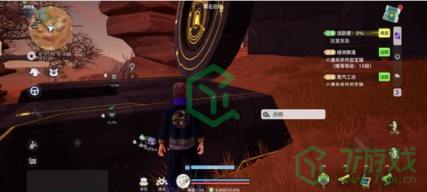 3、跑到黑石巨塔底下,和如图所示的物品进行互动共鸣,就可以解锁黑石遗迹的位置。