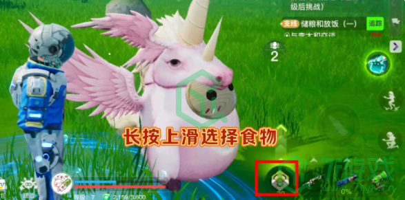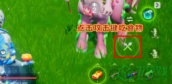 3、选中要吃的食物后,点击右侧的普攻按键就可以吃到食物了。