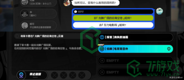 邀请时选择“去「光映广场的街角空地」如何?”