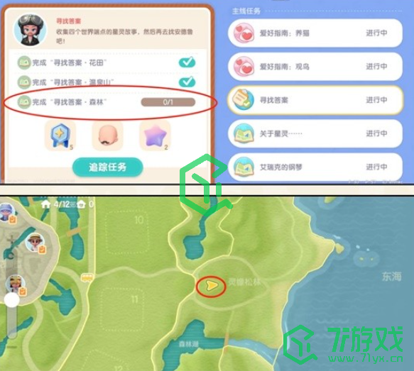 1、先领取主线任务【寻找答案】,完成“寻找答案·森林“,跟着指引来到下图所示位置: