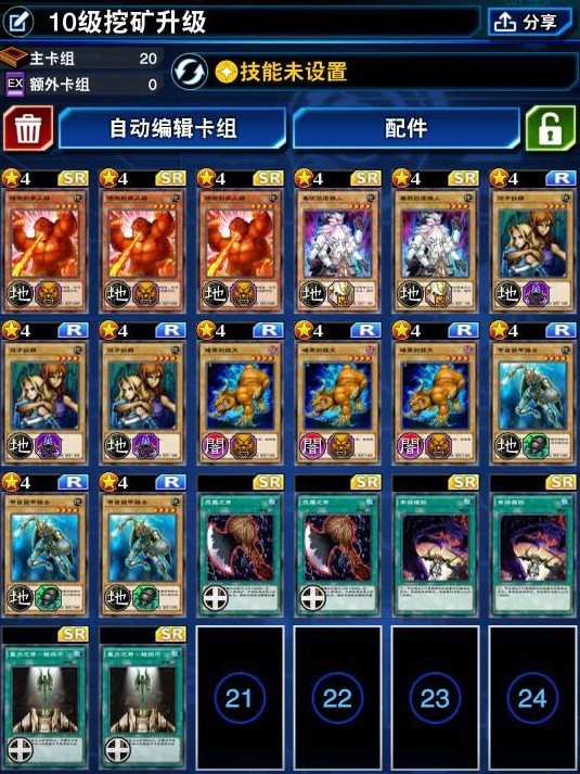 上面刷门挖矿卡组,基本构成就是4星以内的通招高攻卡,加上一些比较好用的装备卡提升攻击力。大家可以按照自己现有的卡自由搭配。卡组目的就是出场站桩,高攻输出。