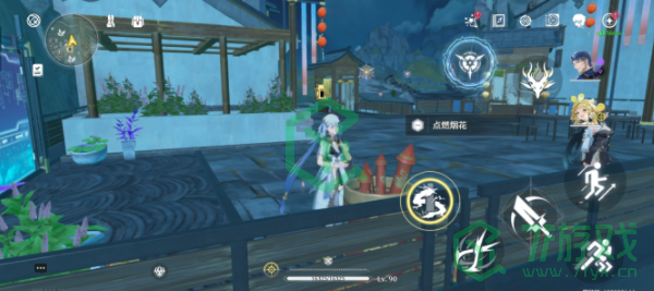 1、在特定的位置,点击交互按钮,视角会强制进行转动,然后等待烟花点燃完毕即可。