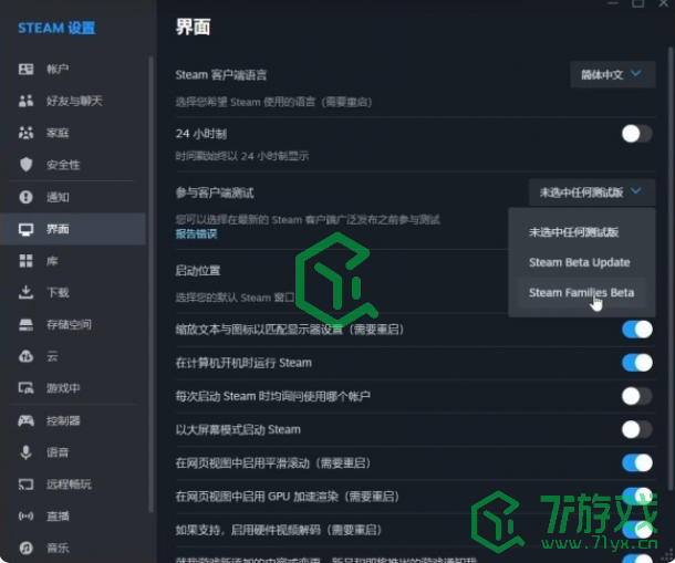 答:打开steam-设置-界面-客户端测试-家庭测试