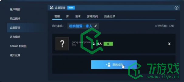 创建好家庭后,点击如图所示的【邀请成员】,邀请自己的steam好友加入即可