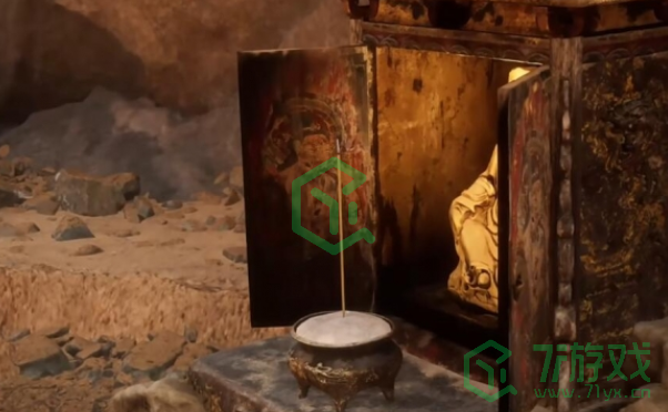 1、来到第二回的黄风岭的隐藏地图,在下图所示的土地庙可以购买到镔铁砂