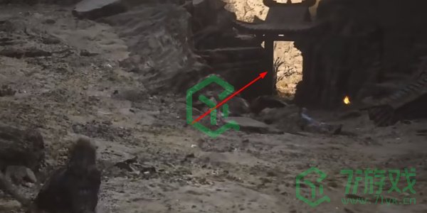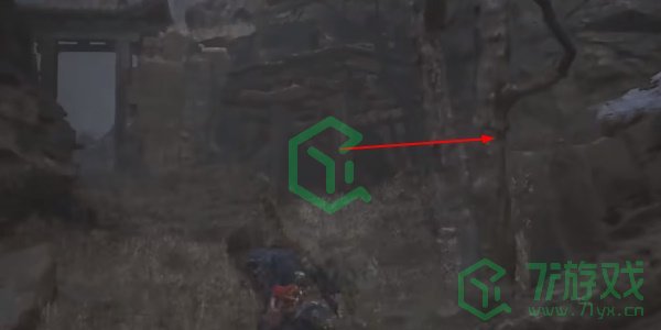 向后转穿过下图的门,在一棵枯树下找到一个佛头,即可获得第三颗佛珠