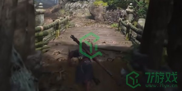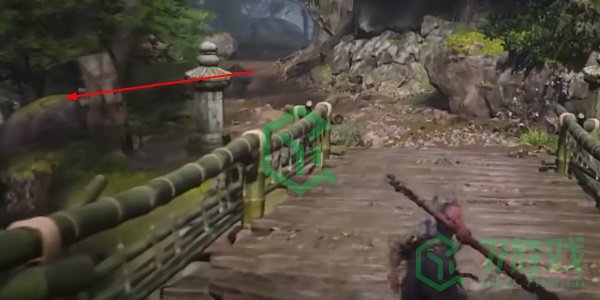 3、穿过木桥后,从左侧跳下去来到小溪里。