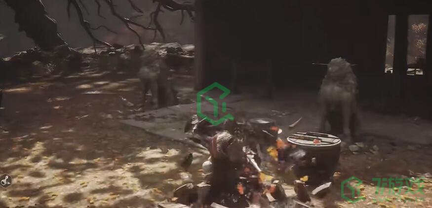 3、跟随指引往前走,砸碎下图所示的酒坛,即可触发和毒敌大王的战斗。