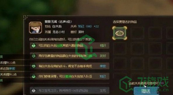 在NPC个人信息页面,可以直接查看他的喜好,赠送相应的礼物,可以有效提升好感度,