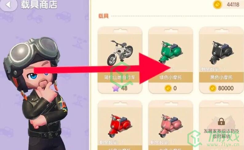 4、花费0元即可购买绿色小摩托。