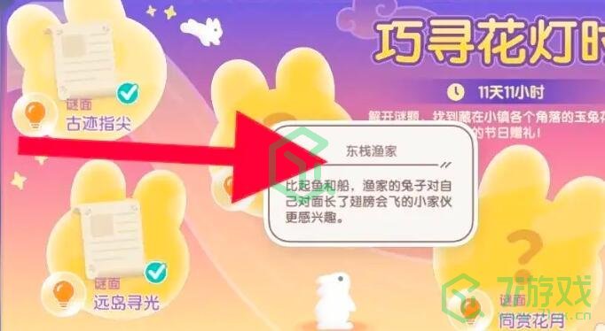 1、先打开巧寻花灯时的活动页面,看到东栈渔家的谜面。