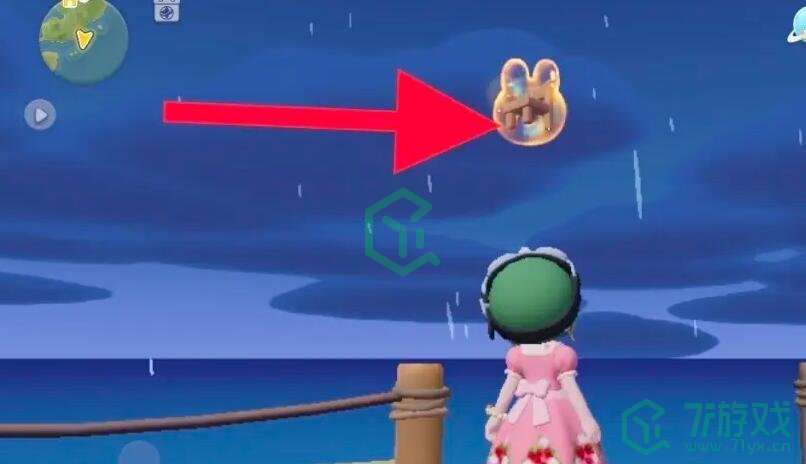 3、达到目的后,往海边的码头走,可以看到玉兔泡泡。