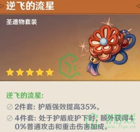 1、逆飞的流星是非常适合女仆的一套圣遗物,因为套装效果对护盾以及相关状态的加持都很适合女仆使用。