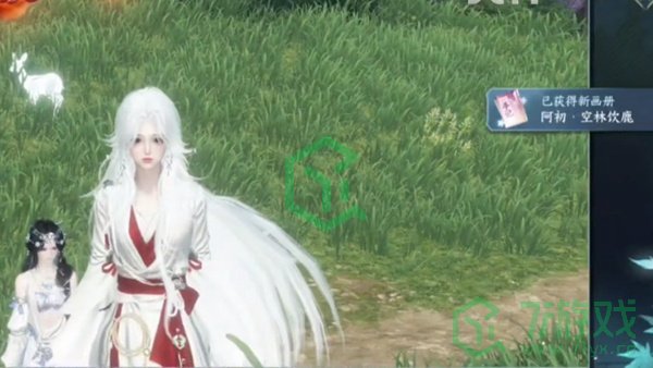 4、等拍完照片后,页面右侧就会出现【阿初卡片空林饮鹿】获得的提示。