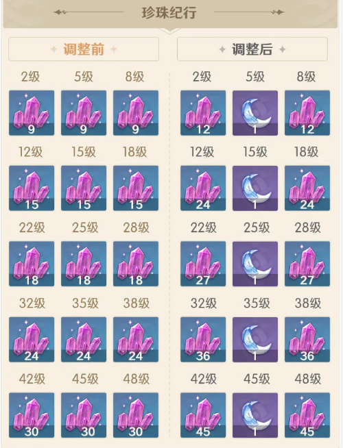 3、珍珠纪行的奖励也是如此,这样的设计方便玩家在1.3版本中更好地获取对应的升级奖励。