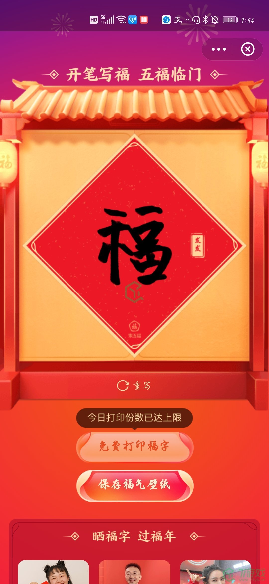 5、完成后,用户可以选择免费打印福字(活动期间每日限定前50万次),也可以保存福气壁纸。