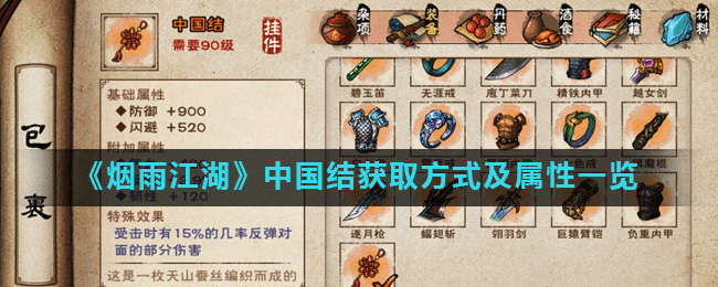 以上就是小编整理的关于《烟雨江湖》中国结获取方式及属性一览的全部内容,更多游戏攻略请持续关注71游戏网!