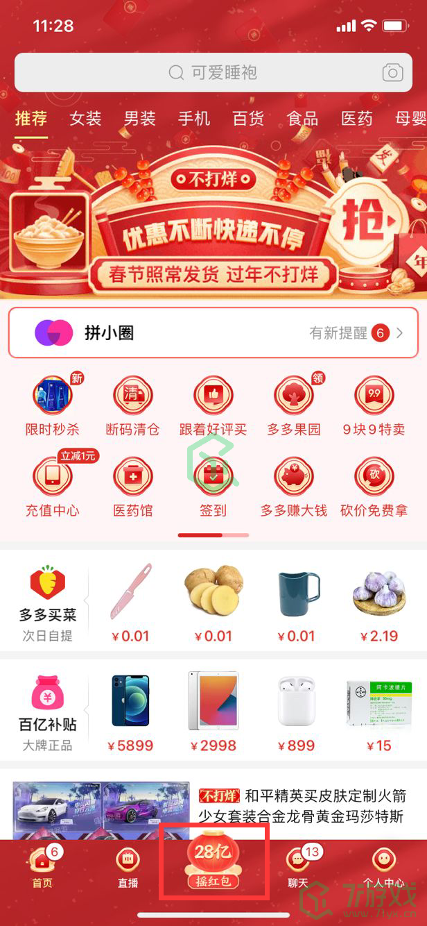 1、进入《拼多多》中,用户可以在最新版(下载地址)下方功能栏看见相关的活动入口。
