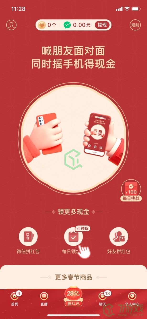 2、点击进入活动中,用户可以摇一摇获取红包提现机会,还可以通过微信口令、每日领取、邀请好友等不同方式来提升红包金额。