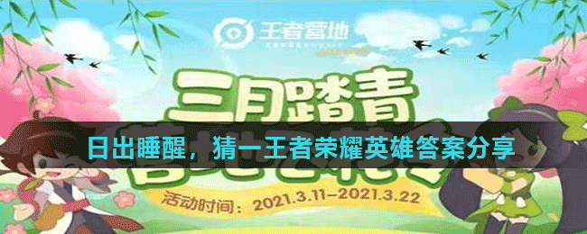 《王者荣耀》日出睡醒是什么英雄,关于《王者荣耀》三月踏青营地飞花令中字谜问题中日出睡醒猜一王者荣耀英雄,很多玩家小伙伴不知道是哪位英雄,下面小编就为大家分享《王者荣耀》日出睡醒,猜一王者荣耀英雄答案分享,希望能够对《王者荣耀》的玩家小伙伴有所帮助。