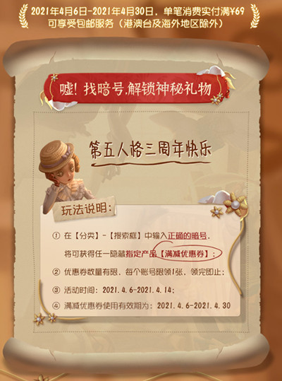 第五人格已经上线三周年啦!官方怎么可能不发放福利呢?神秘礼物暗号就是官方上线的一个商城福利活动,具体的这个暗号礼物是什么呢?想知道的就跟随小编一起来看看吧。