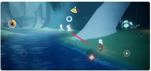 2、在找到这个先祖之后我们跟着提示走,会经过树桩还有小河边上;